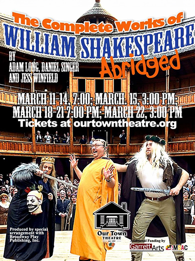 As the first show of our 2026 Season, Our Town Theatre will be performing The Complete Works of William Shakespeare (abridged)!